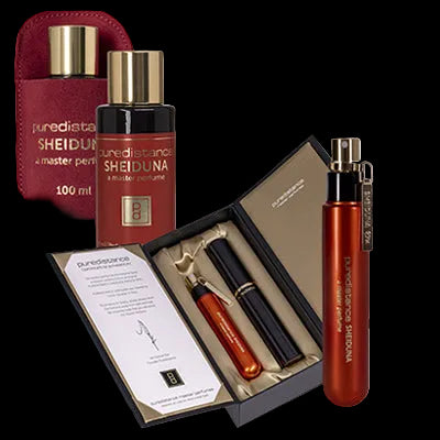 SHEIDUNA är en rik och intensiv parfym inspirerad av panoramautsikten och känslan av gyllene sanddyner i öknen under solnedgången. Mjuka kurvor som ändras från djupt guld, till varm och orangeröd sensualitet och tyst förförelse.